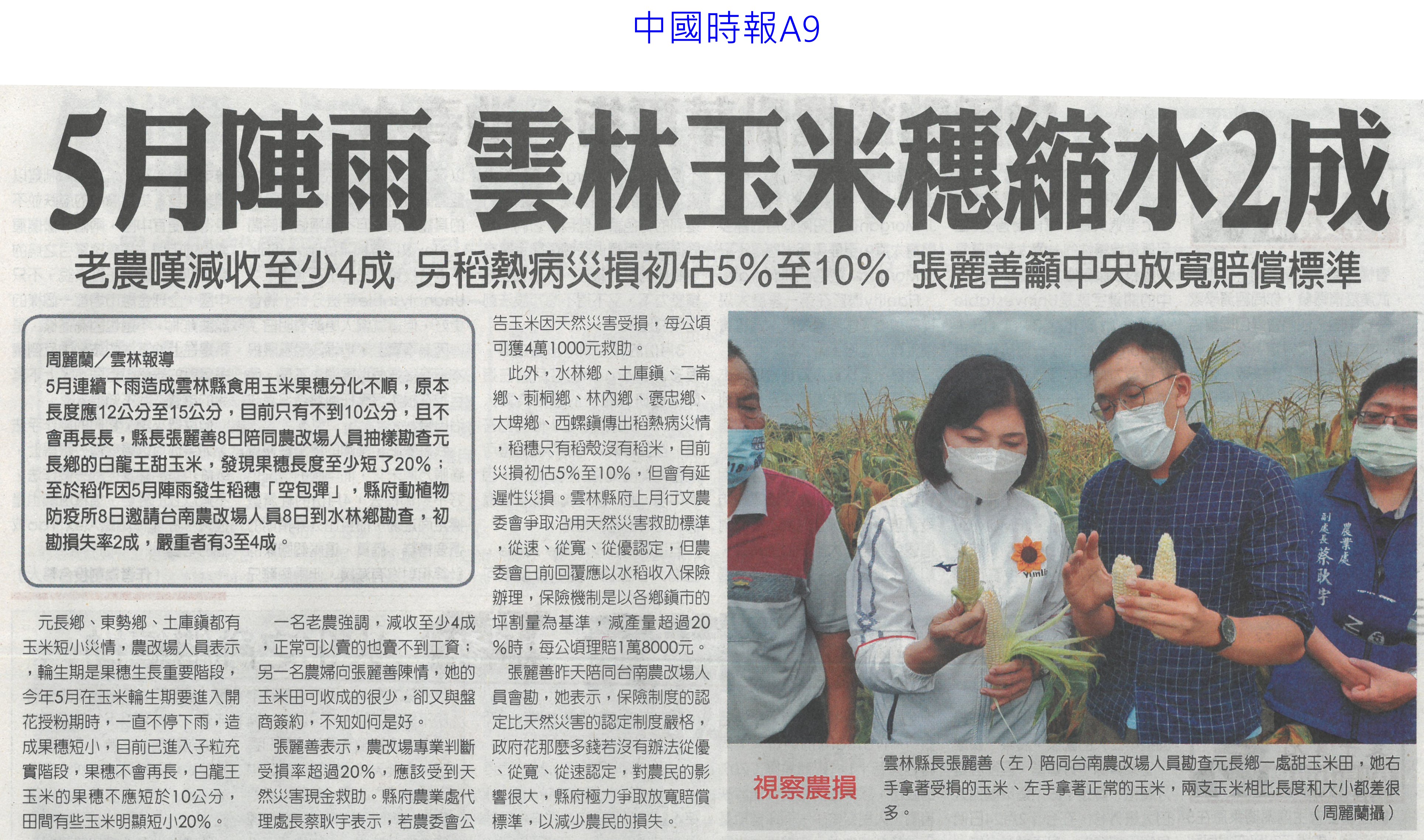 料理:玉米甘筍雞、玉米濃湯、咖哩玉米、玉米珍珠丸、墨西哥玉米捲、玉米布丁酥、五彩玉米甜肉