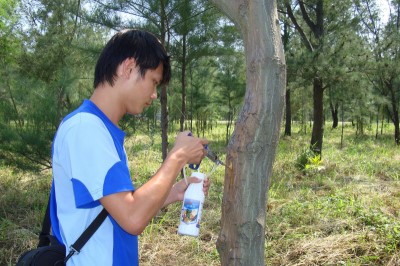 刺桐注射益達胺防治釉小蜂步驟二(注藥)