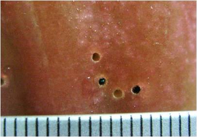 | 米爾頓釉小蜂鑽出果實留下孔洞 | 下載 |