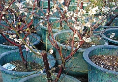 怎麼樣才能讓盆植梅樹開花呢?首先,用盆植3年以上的梅樹時常修剪、整形,使當年生的新枝條形成花芽,並摘心促使生成更多的開花枝,培養成樹姿勻稱的自然開心形樹冠,形成姿態幽雅秀麗之造型,之後若欲調整在元旦開花,需選擇早花品種,如重瓣粉紅色粉台閣品種,置於溫度