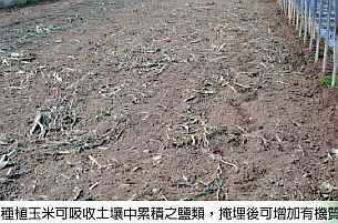 解決可溶性鹽類過度累積一般採用:1. 浸水洗鹽:以大量灌溉水移走可溶性鹽類。2. 客土或深耕:可稀釋降低表層土壤鹽類離子之濃度。3. 換土:移走含高鹽類離子之表層土,加入由外處移來之乾淨土壤。4. 種植耐鹽分作物或綠肥作物:如玉米、田菁等吸收土壤中累積之鹽類離子,並可將植株耕犁掩埋,增加有機質且可釋養分供後作作物使用。