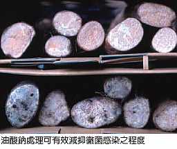 本處理技術操作簡易,可以大幅減少作業時間,且受氣候因子影響小。以禮盒型態的包裝,應用本項處理後在4至 7 日之內都可以有效減輕或抑制切口發黴現象,保持產品原有的優良品質。此外,油酸鈉為法規允許使用的食品添加物之一,因此在使用上無違法及安全之虞。本項技術已取得中華民國專利,若搭配其他前處理,可更進一步延長禮盒包裝山藥產品之櫥架壽命。