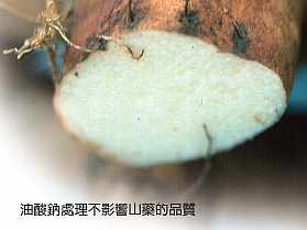 花蓮區農業改良場針對山藥禮盒包裝所需應用之處理技術進行研究,開發作業時間短、保存效果好的處理技術,以協助產業之發展。新技術的基本原理為使用表面消毒處理,降低山藥切口形成時切口表面病原菌密度,並配合油酸鈉處理來延長表面消毒之效果,及減緩後續病原菌的著生與生育,藉以達到保存產品之目的。