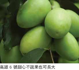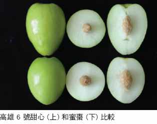 高雄6號 (品系代號KIS-90302)─「甜心」則是高雄場由天然授粉之蜜棗及天蜜雜種後代之實生苗族群中選出,歷經過品系比較試驗後選得之新品種,具有果粒大、酸度低、果汁率高、果皮薄及果肉細緻等官能品評佳、櫥架壽命長等優良特性。相關技術目前已移轉予高雄縣大社鄉農會,以利新品種之快速繁殖推廣。