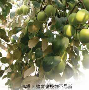 高雄5號(品系代號 KIS-87074)—「青蜜」是高雄區農業改良場自1998 - 2005年間,由天然授粉之蜜棗及高朗1號實生苗後代中選育出,並經過品系比較及區域試驗後選得之優良品系,具有產期長、酸度較蜜棗低、平均產量高於蜜棗,以及掛果枝梢不易折斷等優點。