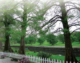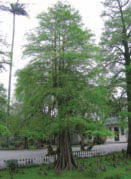筆直的樹幹配上圓椎形的樹型,落葉喬木的落羽松高可達30~40公尺,頗具北國風情。遠眺極為碩壯,近看葉子卻宛如羽毛般的輕盈。