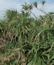 林投在海濱常形成為密集的群落,樹高可達3 -
