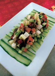 1. 棗子加小黃瓜、山藥、牛番茄、黑木耳,以梅汁、蜂蜜調味,所有好料都有助於健美塑身,這是一道清爽美味、利腸通便的沙拉,在陰鬱的冬季吃來特別可口。