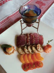 5. 可搭配其他現成的食材如小蕃茄、生魚片(或牛肉片)、干貝、椪柑果肉等在一大盤裡,呈現出豐富色彩和食物的面貌,有華麗感,能增進食慾。