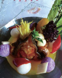 3. 另起油鍋,燒熱麻油,爆香老薑片、蒜頭粒、辣椒段,加入醬汁材料及作法1的陳皮絲、作法2的熟鰻魚,稍把醬料材料拌勻。