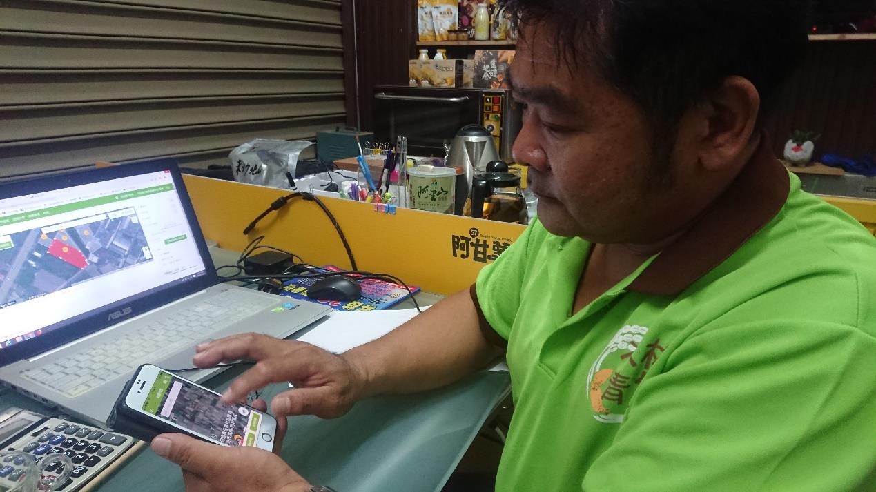 農務e把抓「地圖」的功能-定位、農地面積與地段地號等,讓阿益師可以更放心的擴大生產面積,增加契作戶。所以現在契作面積持續增加,但管理上的工作量卻沒有增加。阿益師有系統的管理,提供帳號給契作戶,每個契作戶都是區域管理者,而阿益師可隨時隨地的打開APP掌握耕地情況。相較以前出去巡田或是外出時,想要了解附近是否有契作農地或農地位置,都需要打電話回去確認與等待回覆,一來一往中,也累積了許多無形成本。如今外出時,開啟農務e把抓APP後,可立即知道耕地位置,可以順路進行巡田作業或是進行作業安排,方便、省時又省了很多成本。