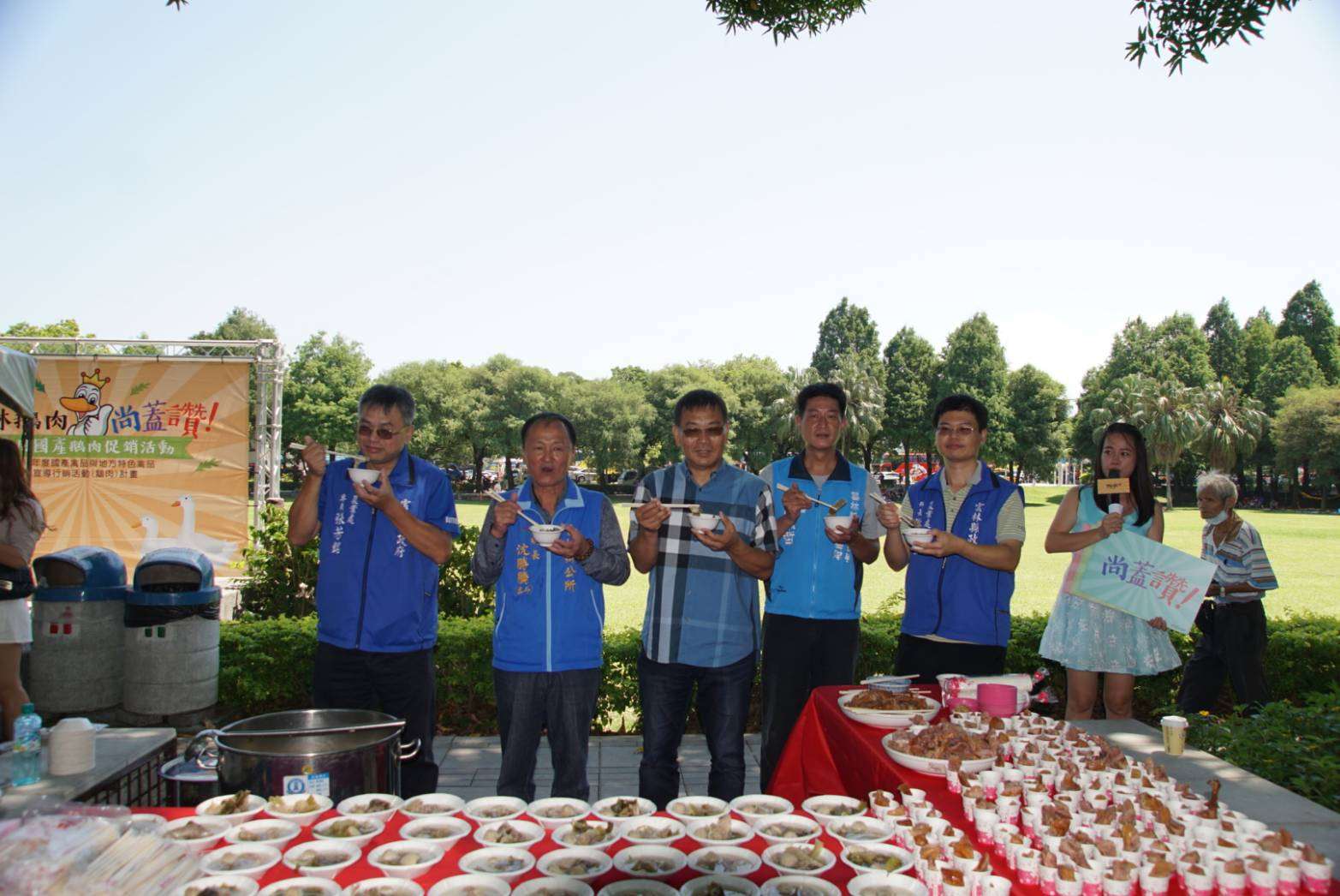 雲林縣政府與中華民國水禽產業促進發展協會今(6)日上午10時30分於古坑綠色隧道舉辦「台灣鵝肉尚蓋讚!愛用國產鵝肉促銷活動」,中華民國水禽產業促進發展協會吳祥斌理事長及轄內養鵝業者等貴賓與會,與現場民眾一同推廣及品嚐鵝肉飯、鵝肉丸湯及酸菜鵝等美味鵝肉料理,鼓勵民眾多多選購在地優質鵝肉,讓更多民眾在這炎炎夏日可以品嚐到鵝肉好滋味。