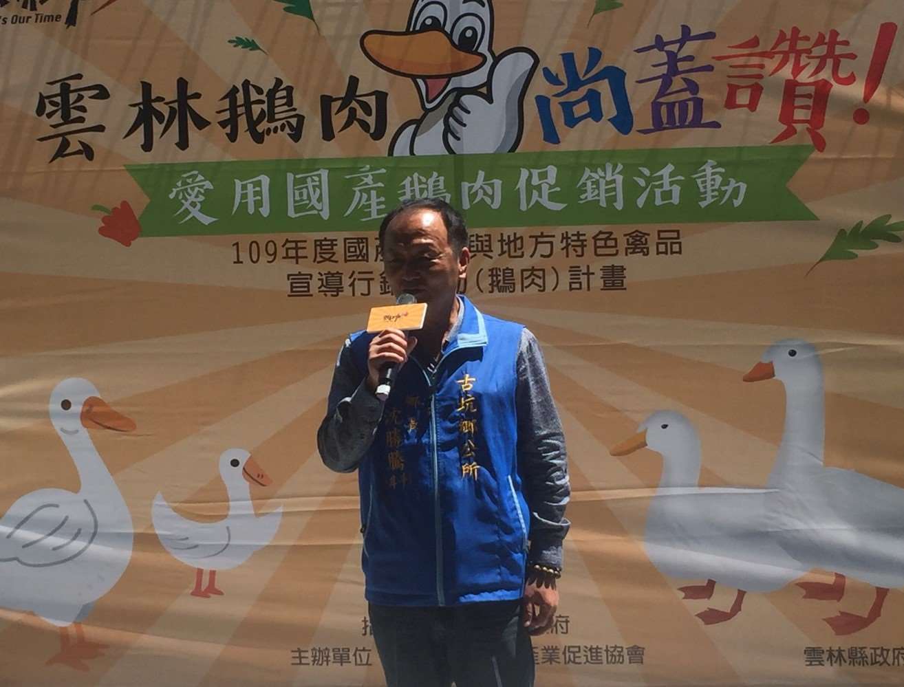 中華民國水禽產業促進發展協會吳祥斌理事長表示,現在肉鵝整體產量回升,希望藉由這次推廣活動讓民眾知道目前鵝肉價格平價,希望民眾及餐廳多多選用國產鵝肉,也感謝雲林縣政府積極辦理推廣扶持養鵝產業。
