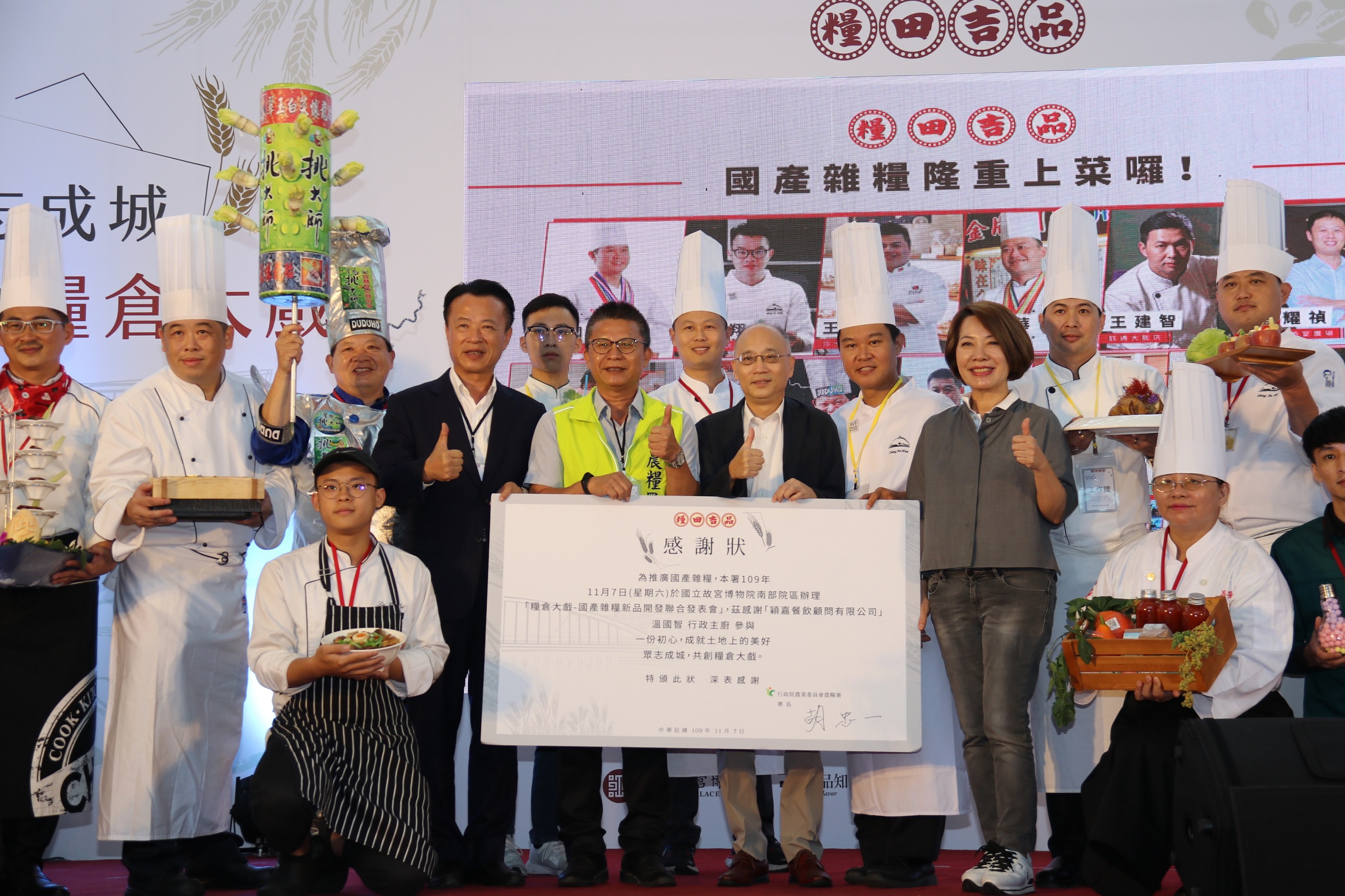 這次在國立故宮博物院南部院區辦理的雜糧新品開發聯合發表會,由行政主廚溫國智師傅邀集在地18家特色名店,包含阿信壽司店、莎士比亞烘焙坊、金牌川菜、鈺通大飯店、滿福樓婚宴廣場、半畝田牛肉麵、十四甲菜頭粿、星際美食廠有限公司、留園精緻料理、偉哥上菜、小原婚宴餐廳、福源肉粽店、樂檸漢堡、晁陽農場、林聰明沙鍋魚頭、春一枝、東春館&善糧新食代、奇麗灣珍奶文化館,各家主廚大顯身手以國產雜糧設計創意料理,搭配「青銅饗宴」特展創作樂曲「大雅韶音」,帶來氣勢磅礡、精采萬分的主廚上菜秀,未來這些雜糧料理也將在各名店上市開賣。