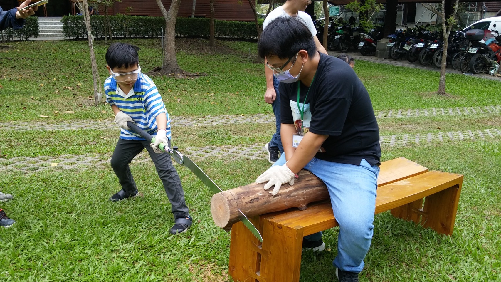學員在環境教育教師的引導下,利用回收的奶粉罐、鐵罐,以及槌子、鐵釘、修枝剪、尖嘴鉗等工具,製作簡易木氣爐,接著直接用來煮晚餐!學員笑著說:「好險有做成功,不然就沒晚餐可以吃了!」。除了野炊之外,活動期間更讓學員體驗搭帳篷、夜間生物觀察、晨起賞鳥及森林瑜珈等活動,在秋高氣爽日子裡,從觸口滿載而歸。
