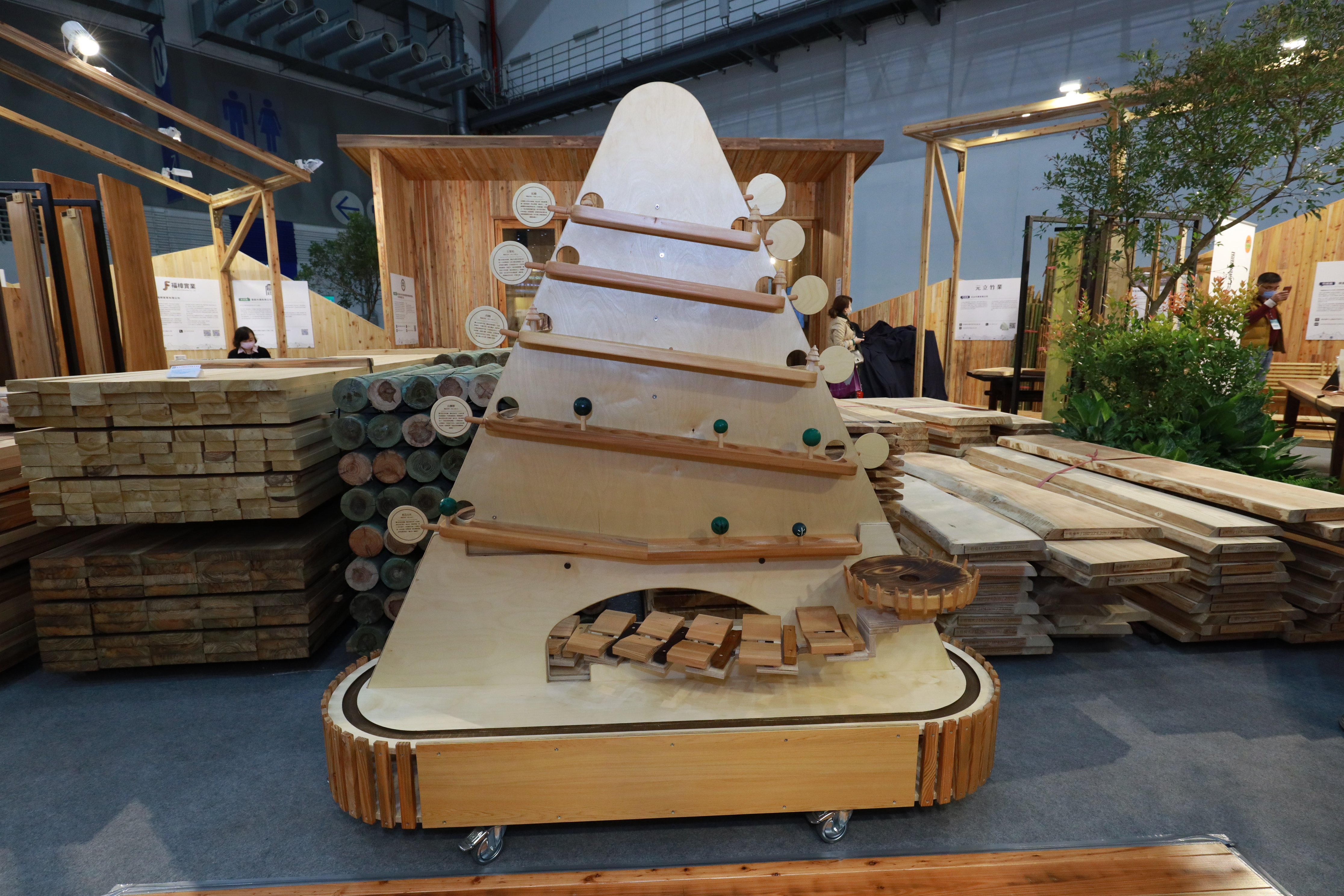 2020第32屆台北國際建築建材暨產品展(12月10-13日),林務局第四度以國家館名義參與,並增加廠家數量,聯手臺灣大學實驗林管理處與28家民間業者,共同打造觀展亮點「國產材臺灣館」。今年參展概念延伸至周遭環境,以符合環境生態的綠色建材,打造有益身心靈的「里山木屋」,讓民眾在都市展館中就能感受到自然森林的氛圍;每一片參展的板材與構工,都是臺灣優美木竹材與精巧工藝的結合,展示國產材獨特的紋理風貌。展期首日開幕活動,邀請與會貴賓於里山意象山頂,投入國產材木球,象徵將山上的永續經營木材送到里山家。