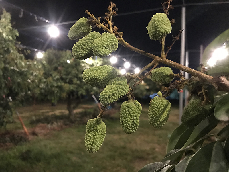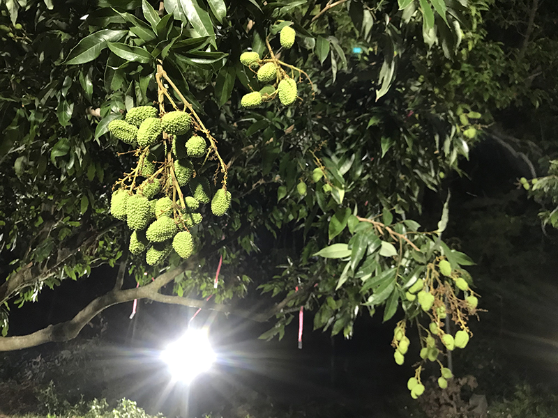 該分所進一步說明,慣行栽培於著果後每週進行1次蟲害藥劑防治,至採收前10天停止用藥。為減少用藥並保持良好的荔枝細蛾防治效果,該分所利用荔枝細蛾避光特性進行夜間燈照,於採收前長達2個月不使用蟲害藥劑,相較於慣行栽培大幅減少施藥,減少蟲害落果,增進農民收益,使消費者食用更安心。