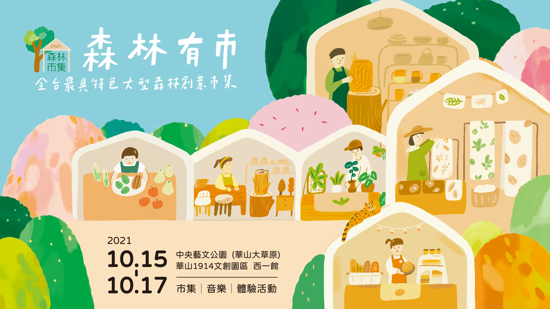 2021年森林市集「森林有市」,集結了國產材創意好物、優良木竹工藝、精彩音樂及豐富人文特色,將芬多精從森林引入城市,帶給匆忙生活一份沁人涼意。不論有事沒事,10月15日至10月17日華山1914文創園區西一館及中央藝文公園(華山大草原),歡迎與家人好友一起走入「森林有市」吧!
