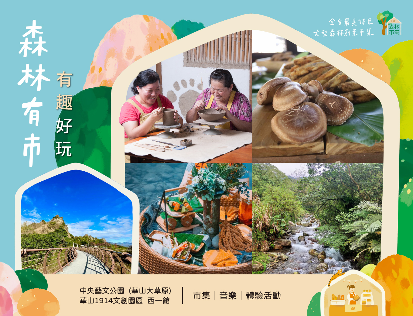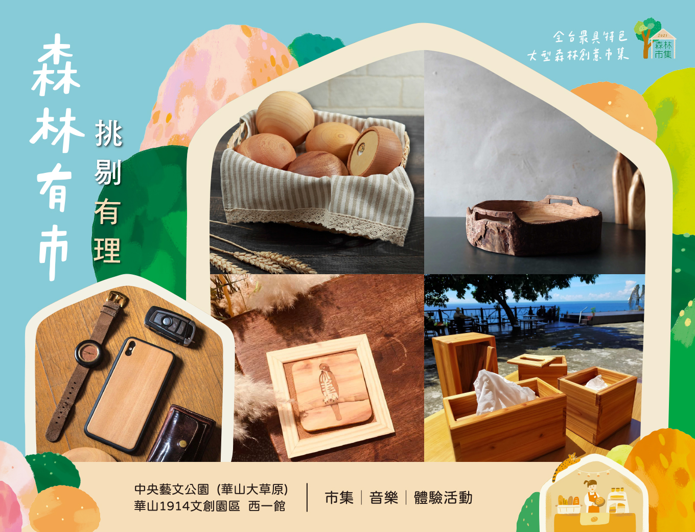 以推廣生態環境為初衷,林務局每年舉辦的「森林市集」已經邁入第五屆,2021年預計自10月15日至10月17日連續三天,於華山1914文創園區西一館及中央藝文公園(華山大草原)舉行。2021年森林市集以「森林有市」為主題,推出「有理-國產木材」、「有節-國產竹材」、「有品-森林特色產品」、「有膳-友善餐飲」、「有趣-生態旅遊」五大主題,以活潑、有趣的方式帶領大、小朋友一起探索大自然的美好面貌,共同珍視臺灣最珍貴的森林資產。
