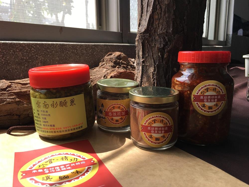 去(109)年社區所舉辦的「滇緬百味嘗鮮香料市集系列-傣族孔雀宴」,呈現的菜色廣受好評,使許多遊客慕名前來想一嚐社區特色料理,但由於社區廚房並沒有特定營業時間,以致來訪的遊客紛紛至鄰近的風味小吃店品嘗,使得社區媽媽覺得可惜,因此透過農村再生的整合,以滇緬四村媽媽廚藝相互交流並管控餐點品質,進而成立「廚藝工班」,並以精忠二村閒置空間為執行據點,推廣傳統滇緬特色美食。