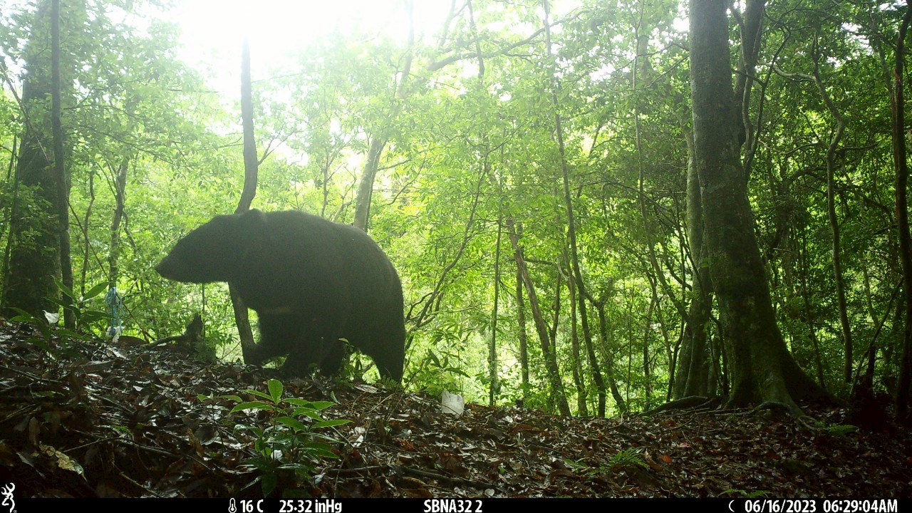 林業保育署新竹分署說,為瞭解轄區臺灣黑熊之分布概況,109年曾透過紅外線自動相機在桃園復興的比亞外地區拍攝到北臺灣第一筆黑熊影像,112年又於同地點再拍攝到同一隻個體。本次通報地點已接近89年國內調查臺灣黑熊分布紀錄的北界-北宜交界的哈盆地區,顯示黑熊族群正逐漸恢復,令人欣喜。