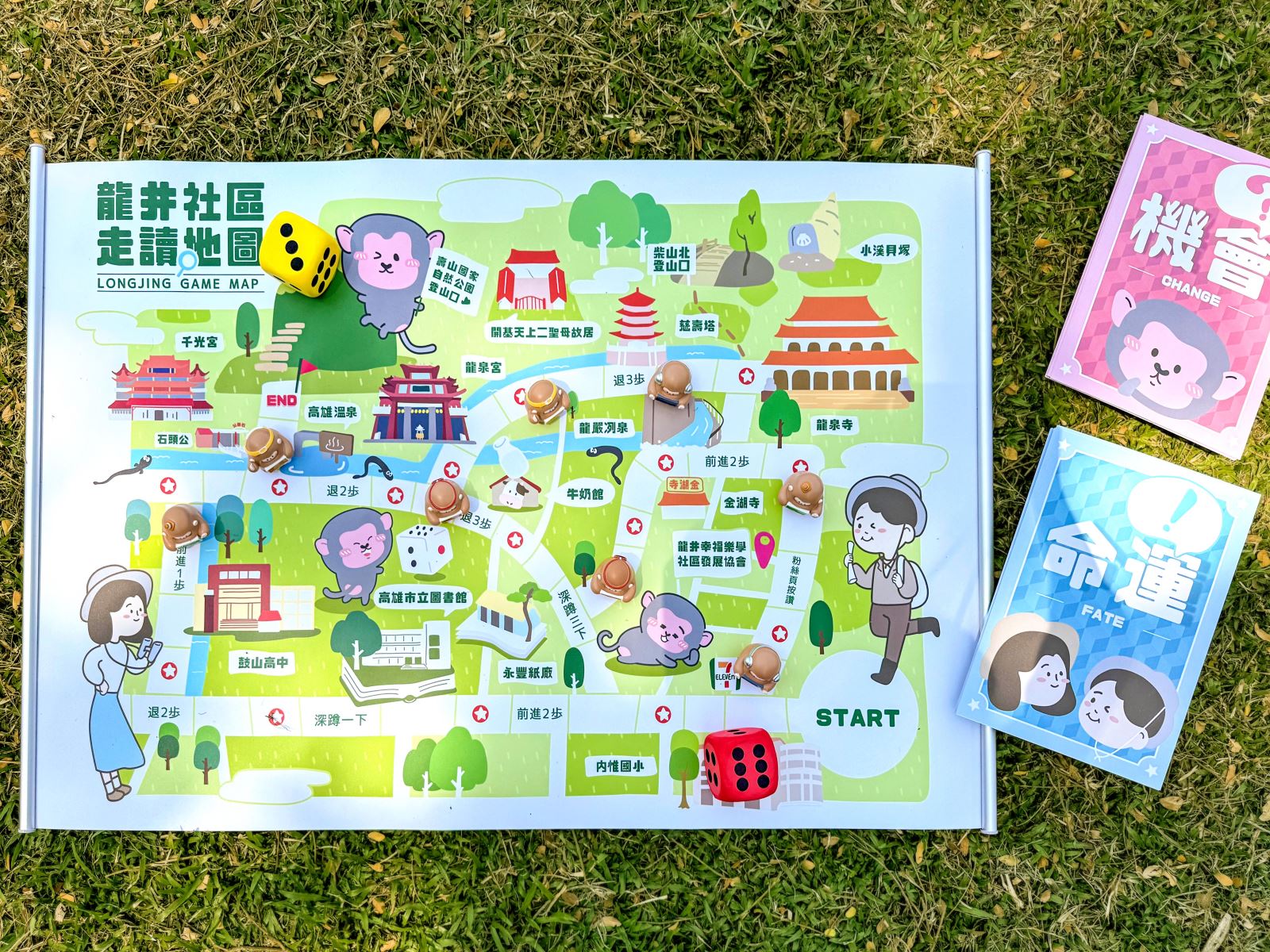 這款專為國小學童設計的「龍井社區走讀地圖-獼猴友善桌遊」內容涵蓋龍井里社區特色據點以及獼猴的相關知識,學童們透過擲骰子在地圖上前進或後退,抽取走讀涵蓋在地文化的「命運卡」與認識獼猴的「機會卡」,理解當地民俗信仰與社區文化的同時也學習獼猴相關知識,例如「遇到獼猴該怎麼辦?」、「獼猴苦惱要吃什麼,請問哪一個是牠主要的食物?」,讓學童在遊戲中思考並選擇正確面對獼猴的方式,提供學童趣味性與知識性的雙重體驗!