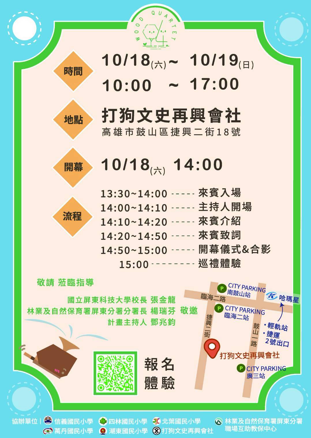10月18日下午2時將舉辦開幕式,邀請屏科大馬上閔副校長、林業保育署屏東分署張秘書智強及多位合作學校校長與產業代表共襄盛舉,象徵木藝教育在校園深耕、產官學攜手合作的具體成果。