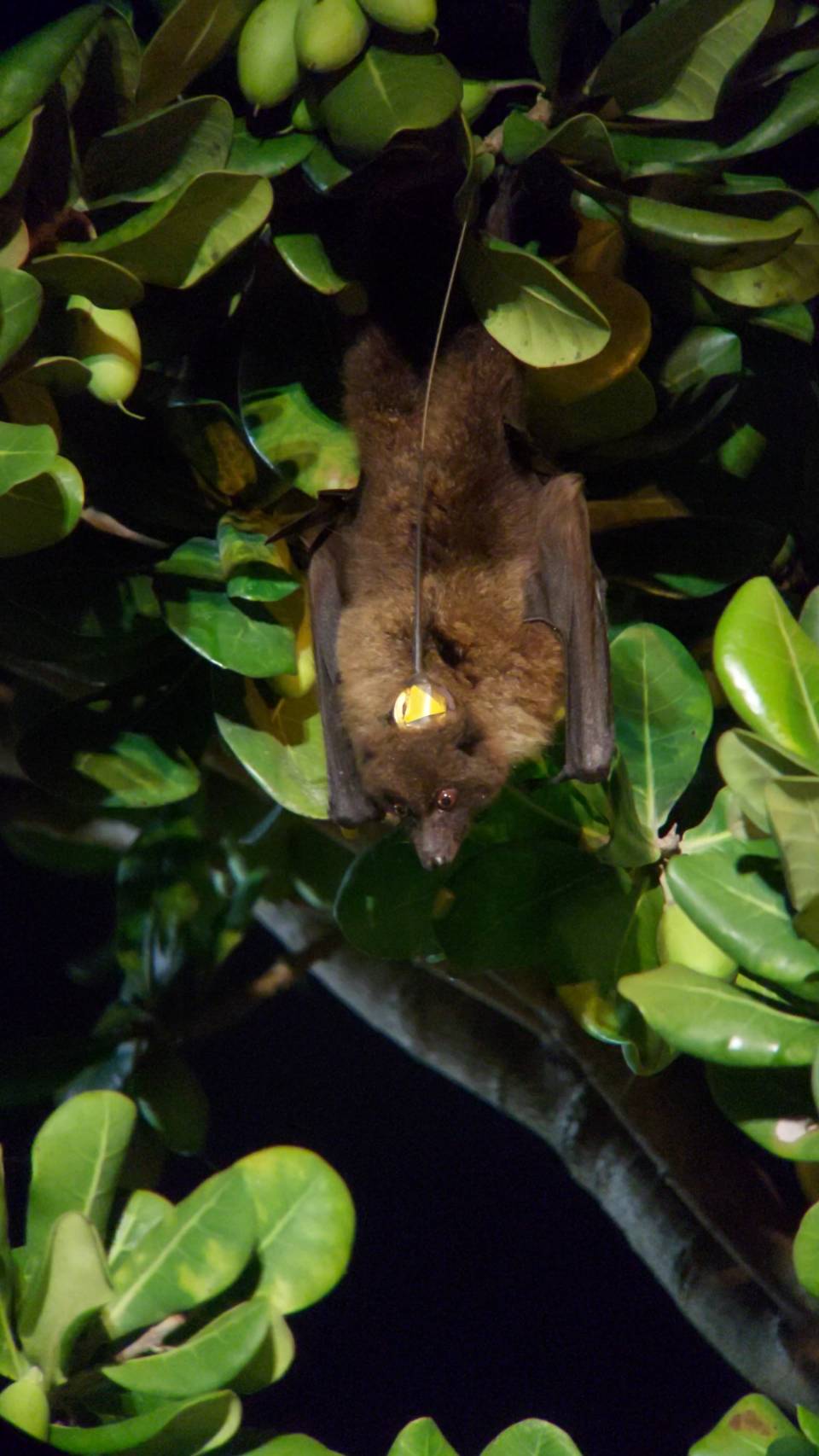 研究團隊透過DNA分析、無線電與GPS追蹤技術,記錄狐蝠的活動軌跡與生態習性。二年間共採集逾千份食渣與排遺樣本,發現多數個體具有高度棲地忠誠性。其中一隻雄蝠「阿明」已連續五年在同一區域活動,展現明顯的地盤穩定性。另有9隻裝設發報器的狐蝠,活動範圍多集中於1平方公里內,白天停棲於固定樹木,夜間覓食範圍穩定。牠們主要取食瓊崖海棠、大葉山欖與欖仁樹果實,充分利用花蓮市內的公園、校園與行道樹所構成的城市綠色廊道。