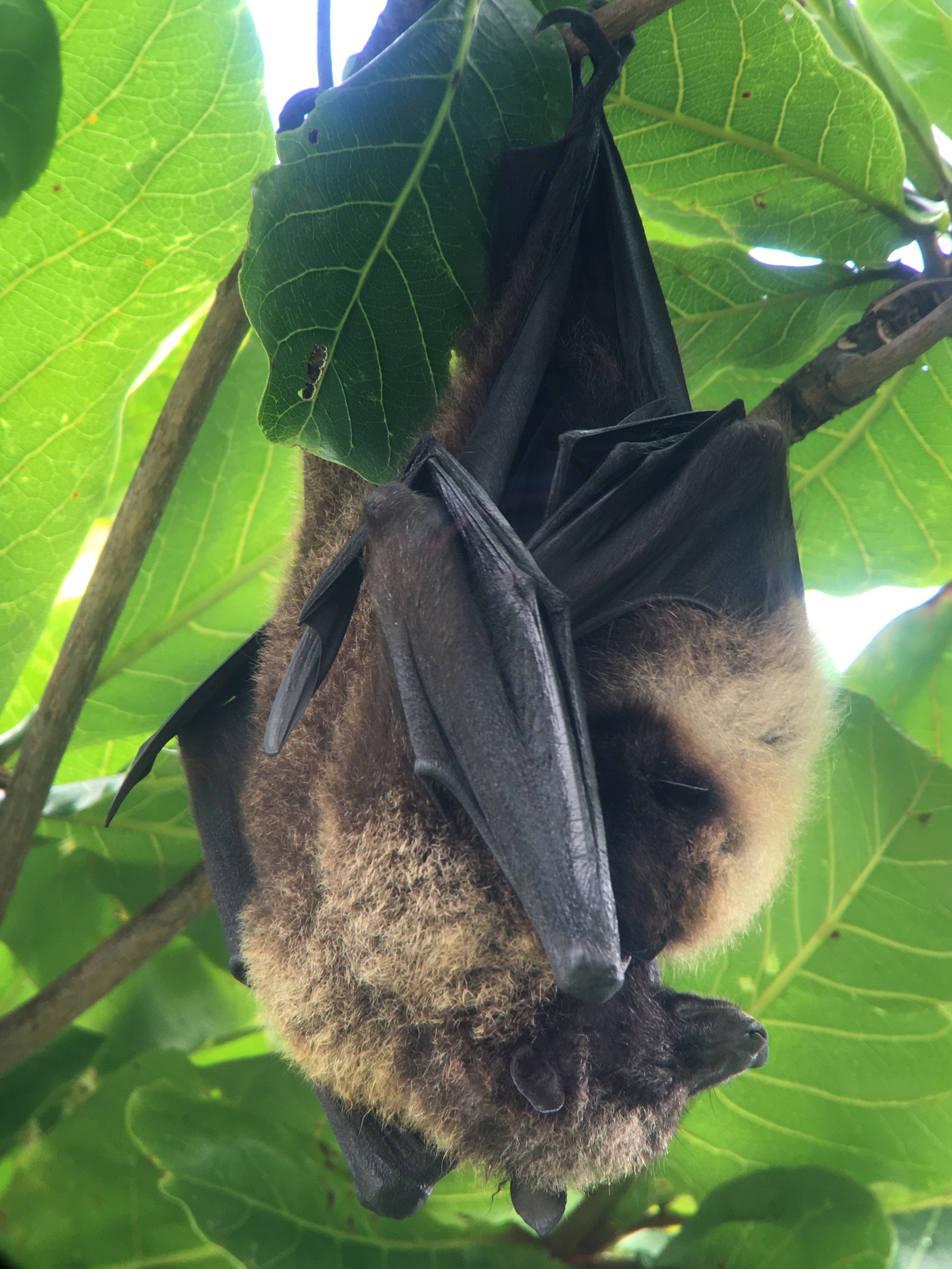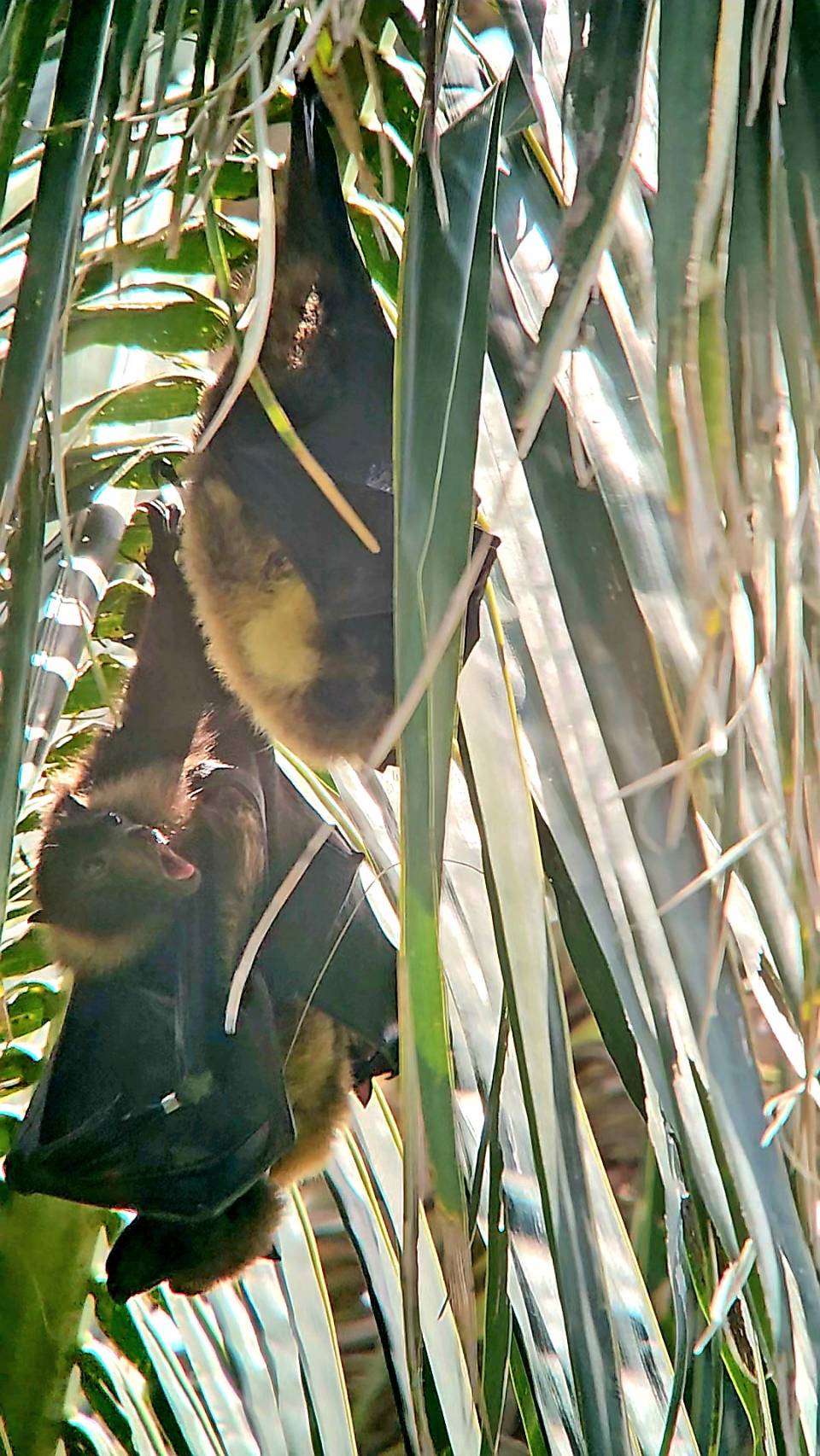 研究期間亦觀察到雌蝠「嘉嘉」與雄蝠「麻吉」共棲於同一棵可可椰子樹上,罕見的互動畫面顯示,狐蝠具有豐富的社會行為。研究成果不僅揭開這種大型蝙蝠在都市中生存的秘密,也證明花蓮市的綠地配置具備支持野生動物族群穩定發展的潛力。