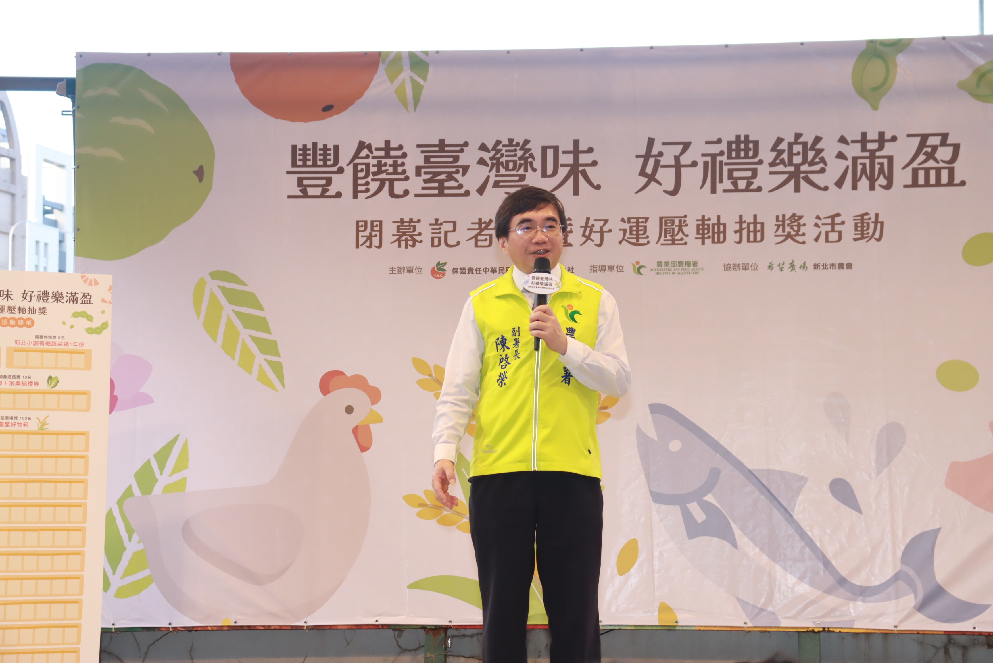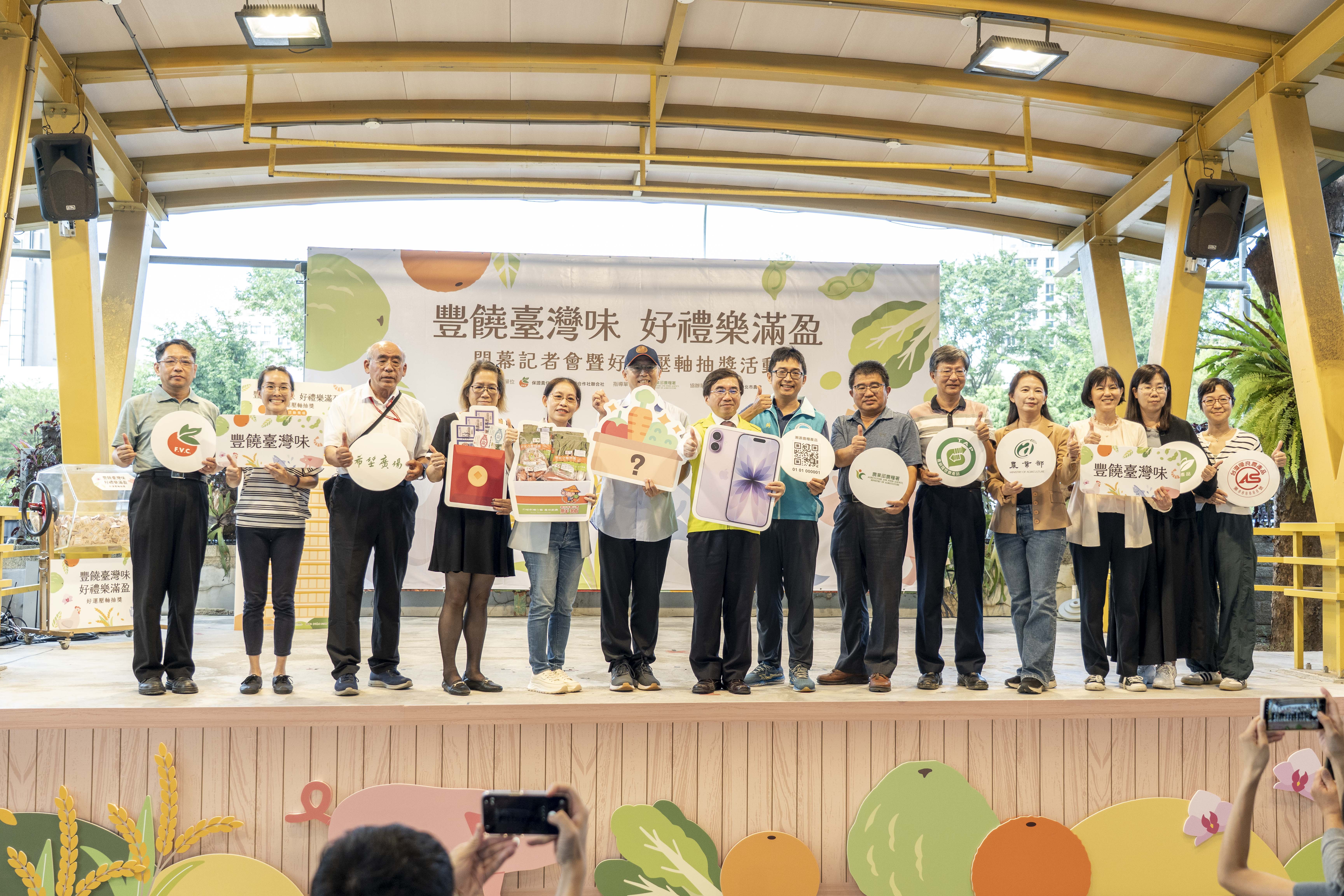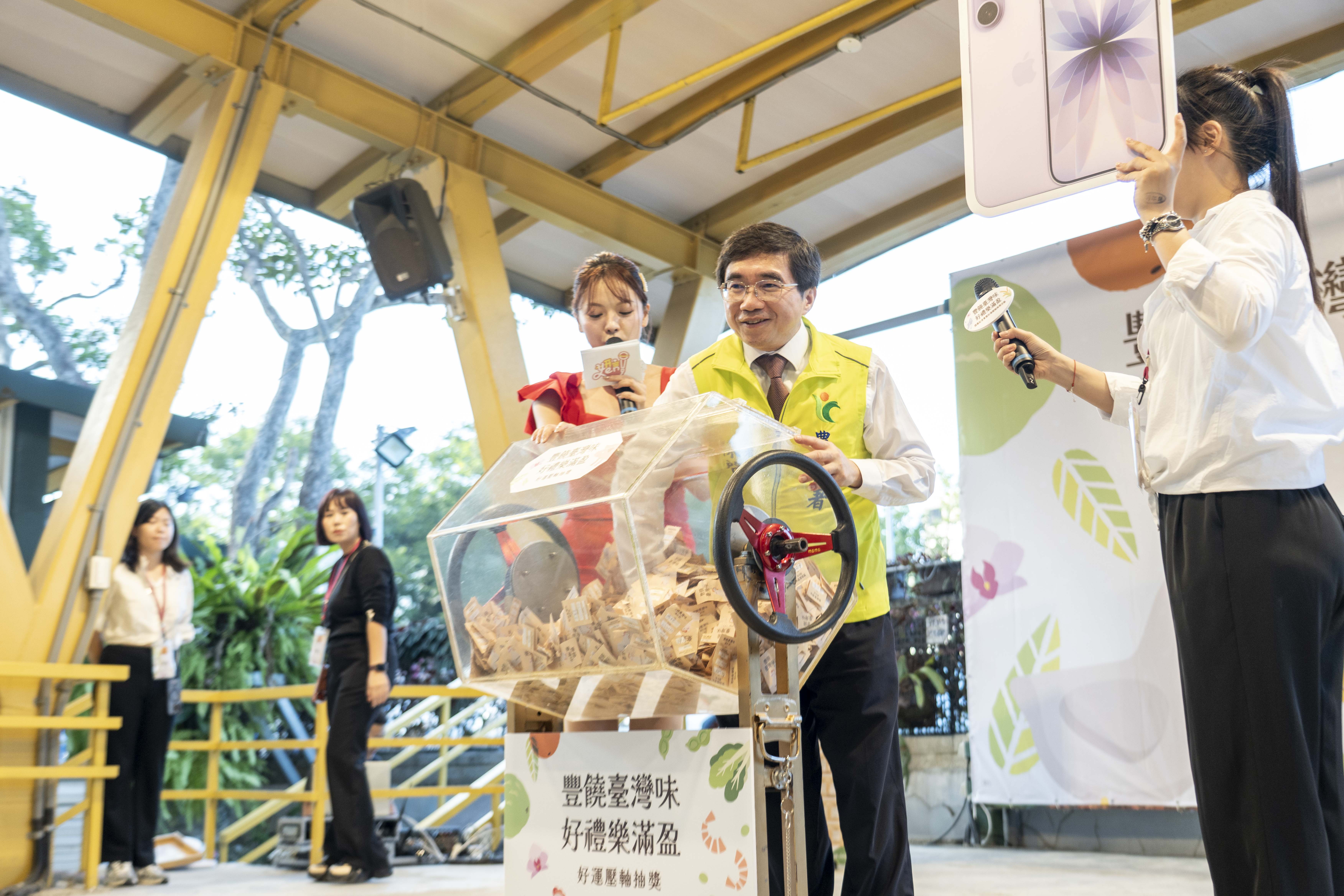 農糧署說明,為鼓勵消費者踴躍採購國產農產品,國聯社於活動期間推出「農民收據及發票抽獎」方案,最終兌換達2萬2千張,經統計累計營業額約新臺幣1,200萬元,單週營業額為600餘萬元,較一般週別約500萬元成長近20%,充分展現全民支持在地農業的實際行動。所以特別舉辦「豐饒臺灣味 好禮樂滿盈」閉幕記者會暨好運壓軸直播抽獎活動,現場聚集滿滿人潮,氣氛歡騰,總獎項超過百項、總價值達三十萬元以上,其中最大獎為蘋果 iPhone 17(256GB),其他豐富獎品包括一年份有機蔬菜箱、全聯與家樂福禮券及精選農產好物福箱等,相關中獎名單將公告於中華民國果菜合作社聯合社官網、新北市農會臉書及農糧署「鮮享農YA」粉絲專頁,讓民眾方便查詢。