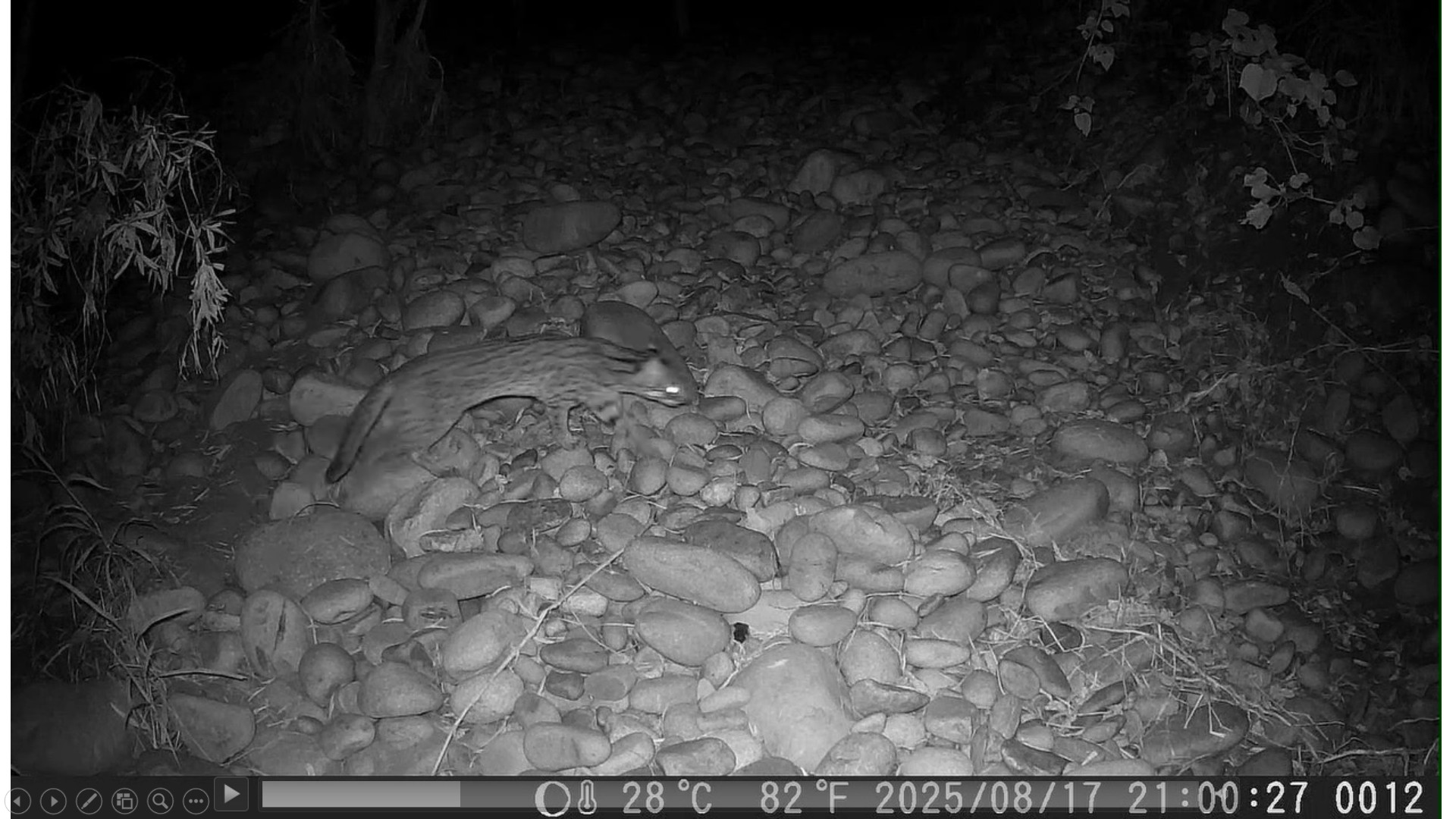 睽違二十年,石虎於今(114)年8月,在林業及自然保育署臺中分署設置於鹿寮南溪的自動相機捕捉到身影,這項珍貴的紀錄,象徵該溪流生態治理及復育的顯著成效,成功讓曾因災害而土砂裸露的河床,蛻變為生機勃勃的生態廊道,為石虎擴展棲息地帶來希望,也為未來的保育行動注入強心劑。