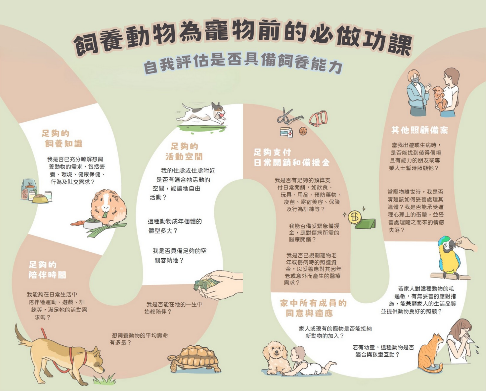 為推動多元寵物分類分級管理,協助飼主於飼養前建立正確的動物飼養與照顧知識,農業部繼111年推出犬篇、貓篇、兔篇及哺乳類篇後,再集結國際飼養原則與專業獸醫師意見,於今(24)日發布「寵物飼養與照顧指南-通則」及「寵物飼養與照顧指南-鳥類篇」,協助飼主於飼養寵物前充分評估,了解如何正確照顧所養寵物,避免錯誤的飼養方法造成動物生病或行為問題,指南已公布於農業部動物保護資訊網(首頁/我想了解專區/同伴動物/寵物飼養與照顧指南),歡迎民眾多多下載運用。