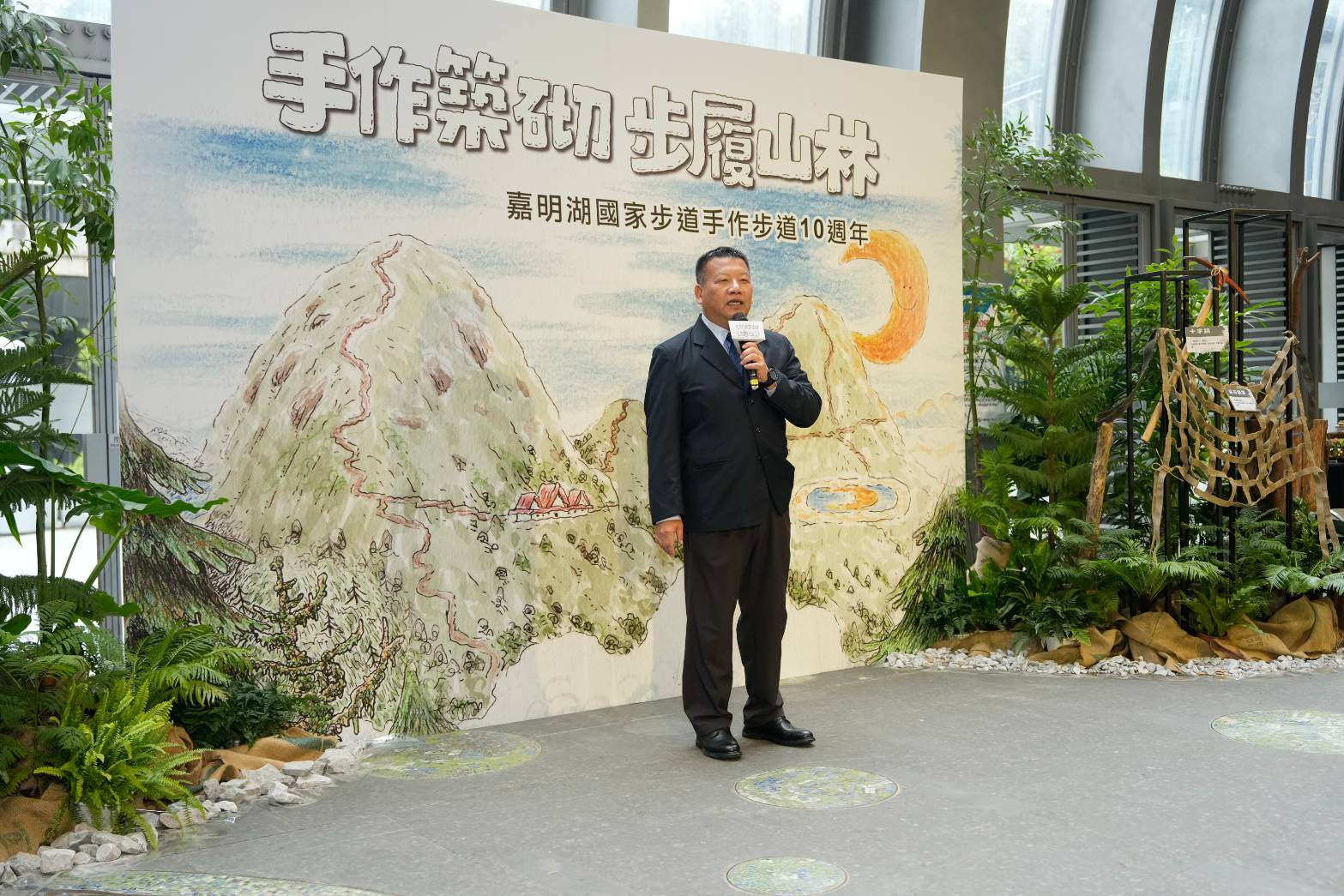 在海拔三千公尺的嘉明湖國家步道上,有一群人正實踐著「就地取材」的理念,不依賴重型機具,而是憑藉無數雙手及汗水修復步道。農業部林業及自然保育署臺東分署今(12)日在臺北捷運大安森林公園站陽光大廳,舉辦「嘉明湖手作步道十週年特展」臺北前導展開幕活動,邀請民眾近距離感受這場別具意義、長達十年的守護行動。