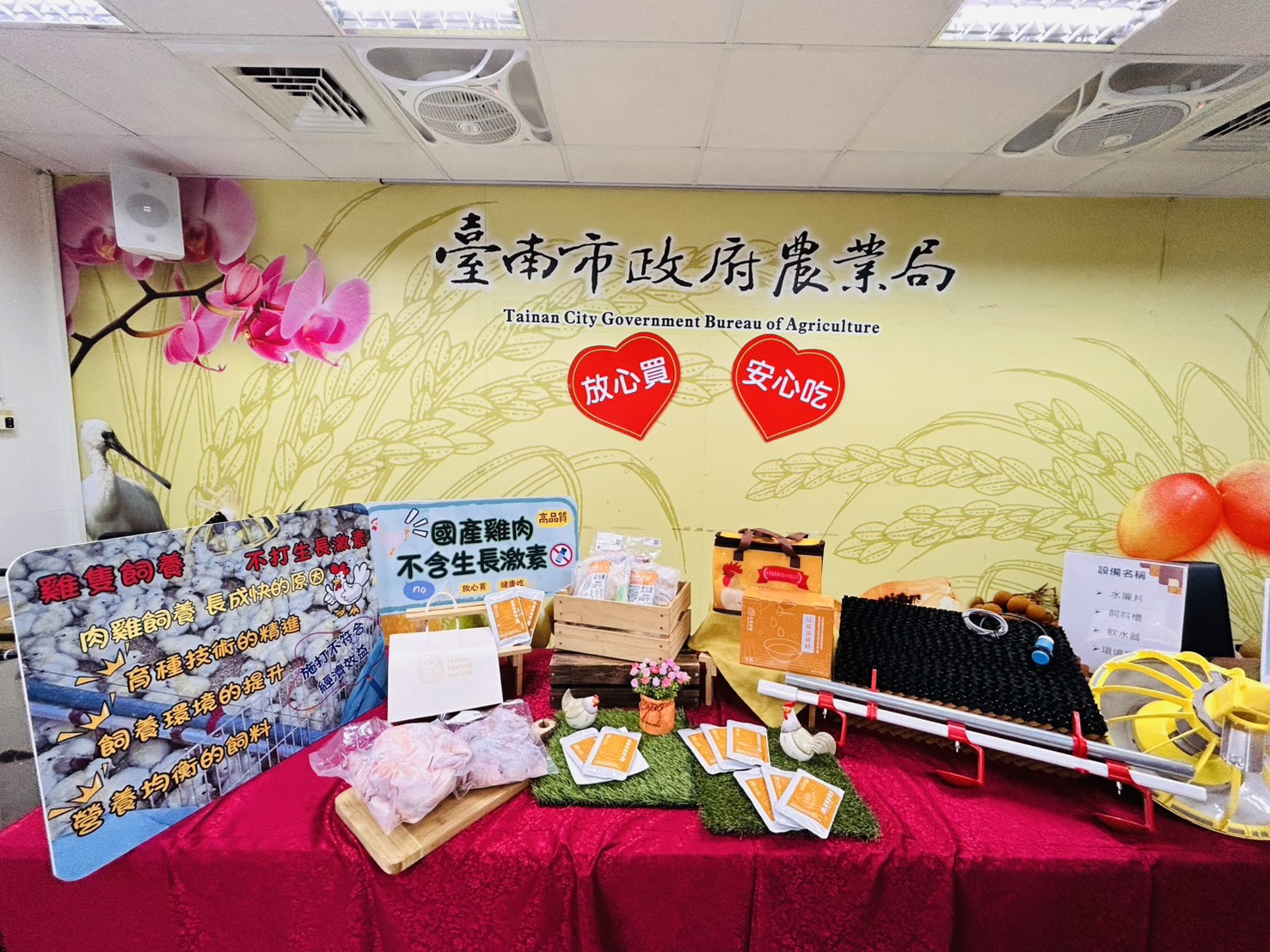 臺南市長黃偉哲表示,臺南市是土雞及肉雞重要生產地,為推廣國產雞肉,市府農業局於1月28日召開記者會,邀請臺南市養雞協會陳谷羽理事長及官田區白肉雞產銷班盛准琳班長,向民眾說明畜牧業者如何用心飼養雞隻,生產出優質的好雞肉。