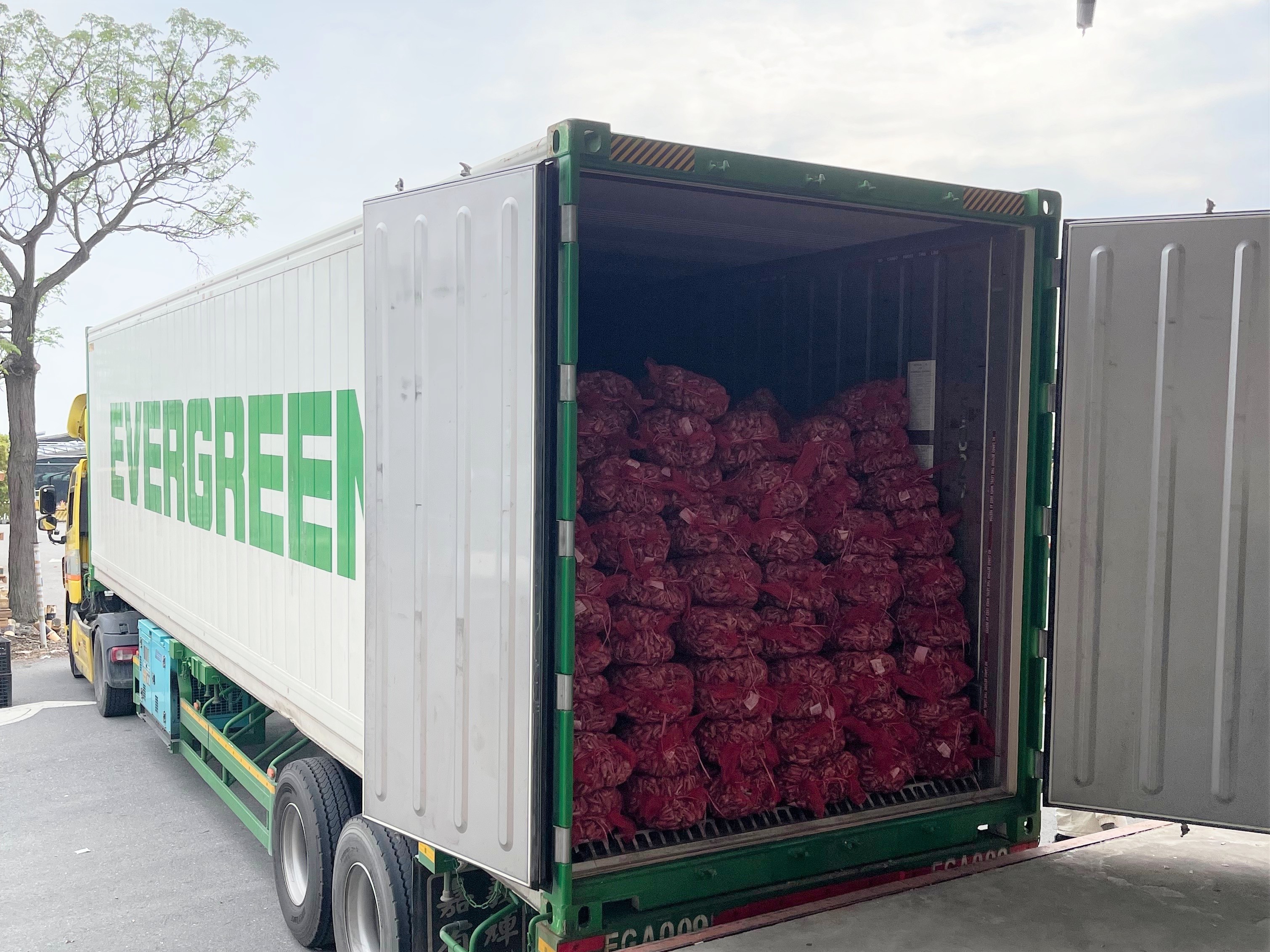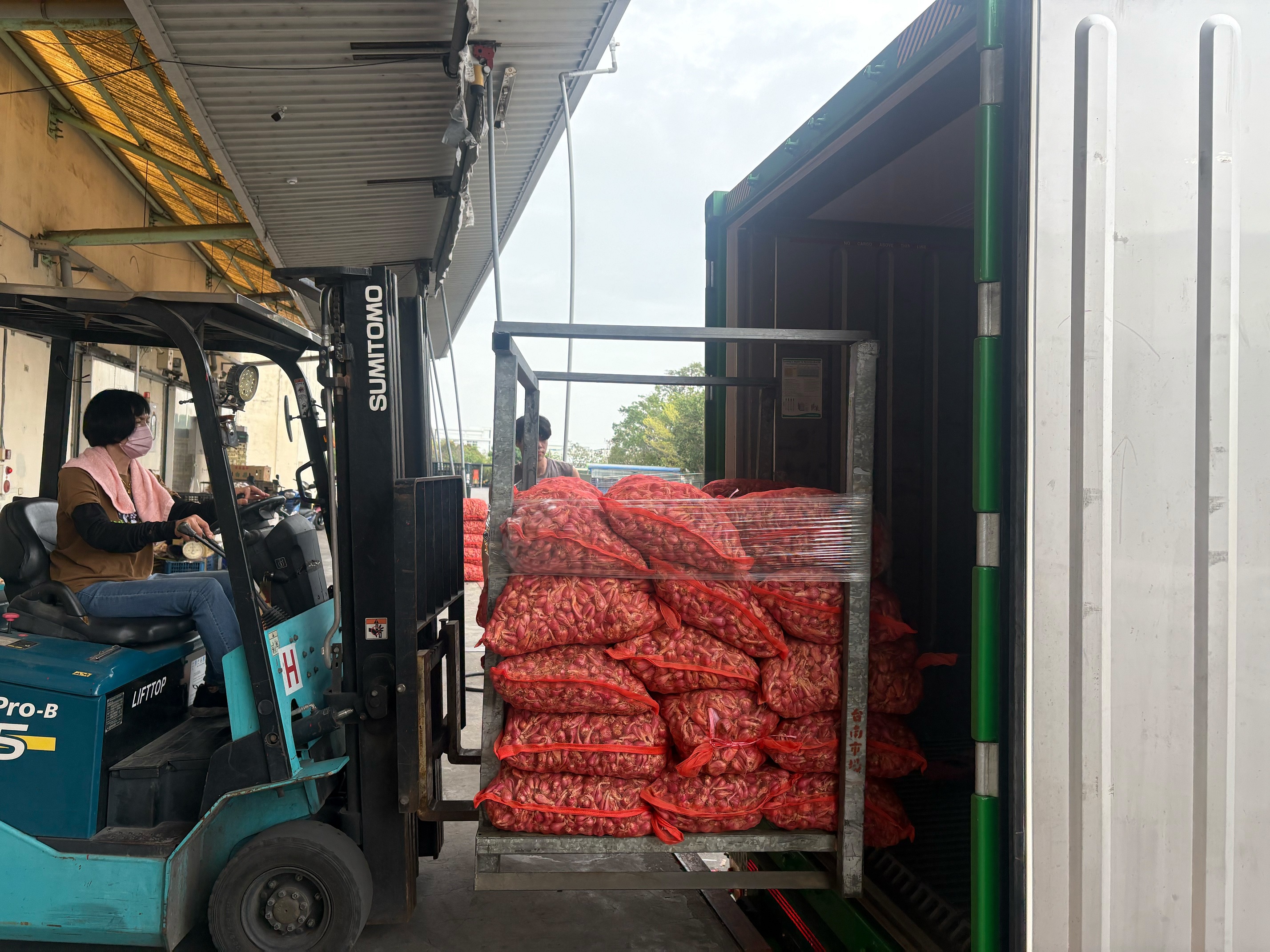 為協助拓展臺灣紅蔥頭外銷多元通路,農糧署成功輔導外銷韓國72公噸。首櫃24公噸於今(4)日正式裝櫃啟運,將臺灣紅蔥頭外銷國際市場。