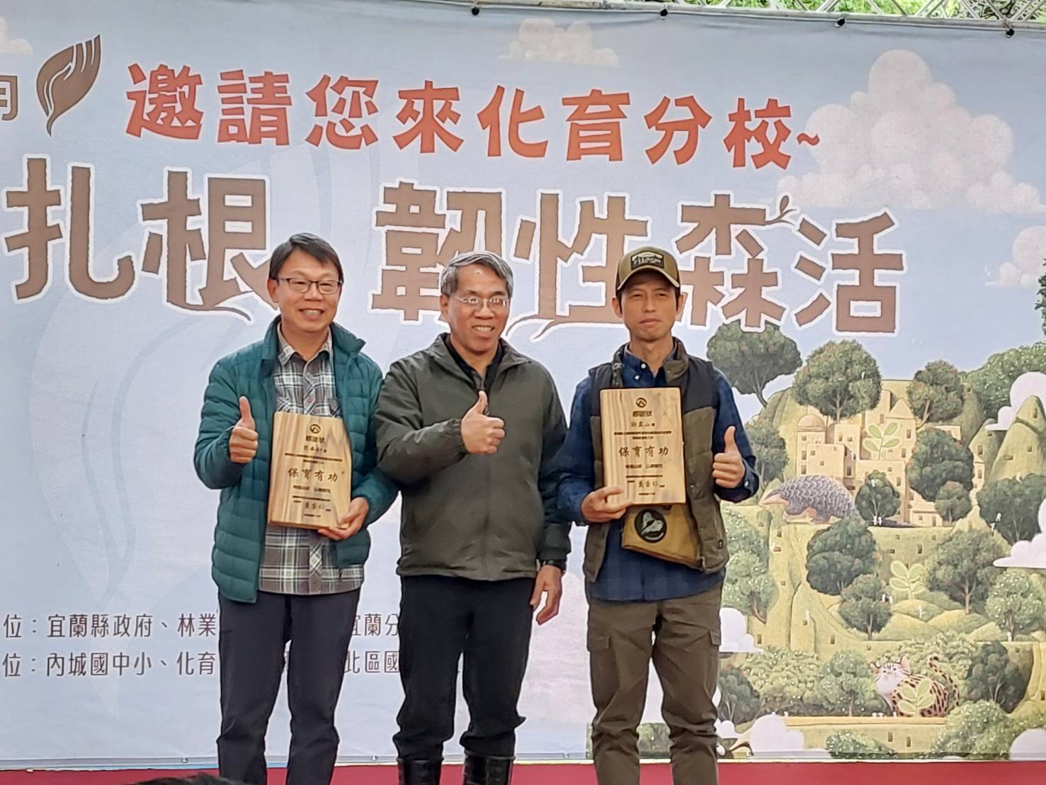活動中同時表揚長期投入森林保育的社區與夥伴,包括守護食蛇龜棲地並推動友善農業的新北市石碇區永安社區發展協會、維護冷埤水質的員山中華社區發展協會,以及長期巡守保安林的宜蘭縣無尾港文教促進會;另也表揚投入噶瑪蘭青鱂復育工作的農友簡奉如與謝震山,展現農業與生態保育共生共好的成果。