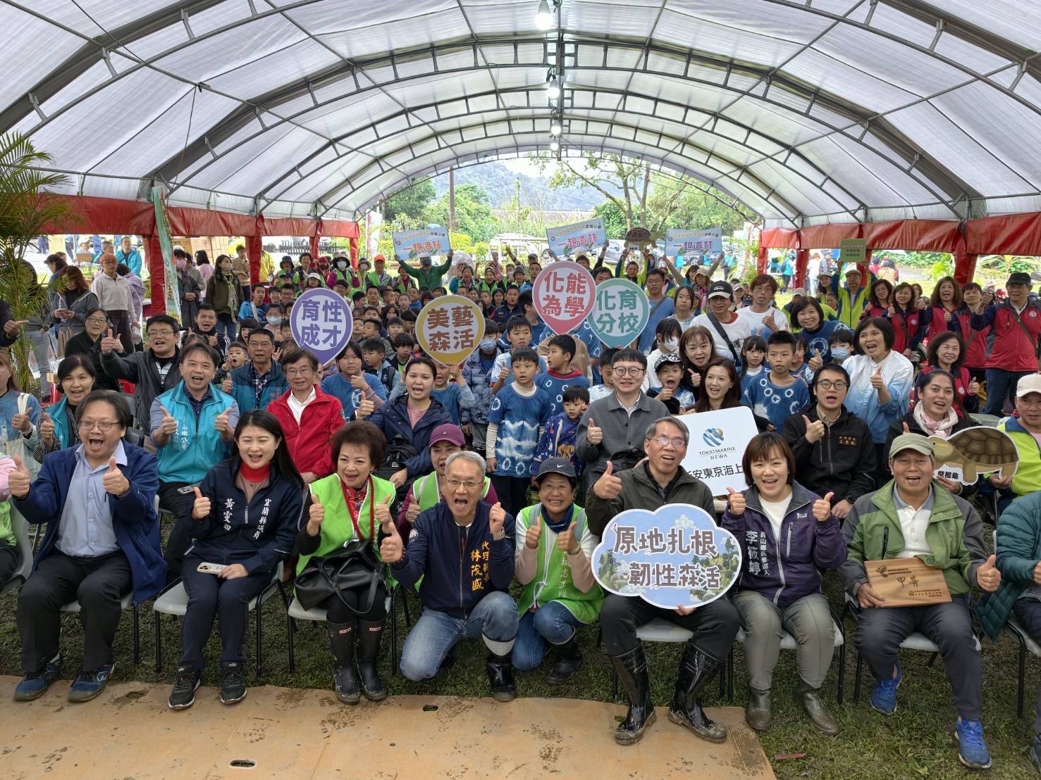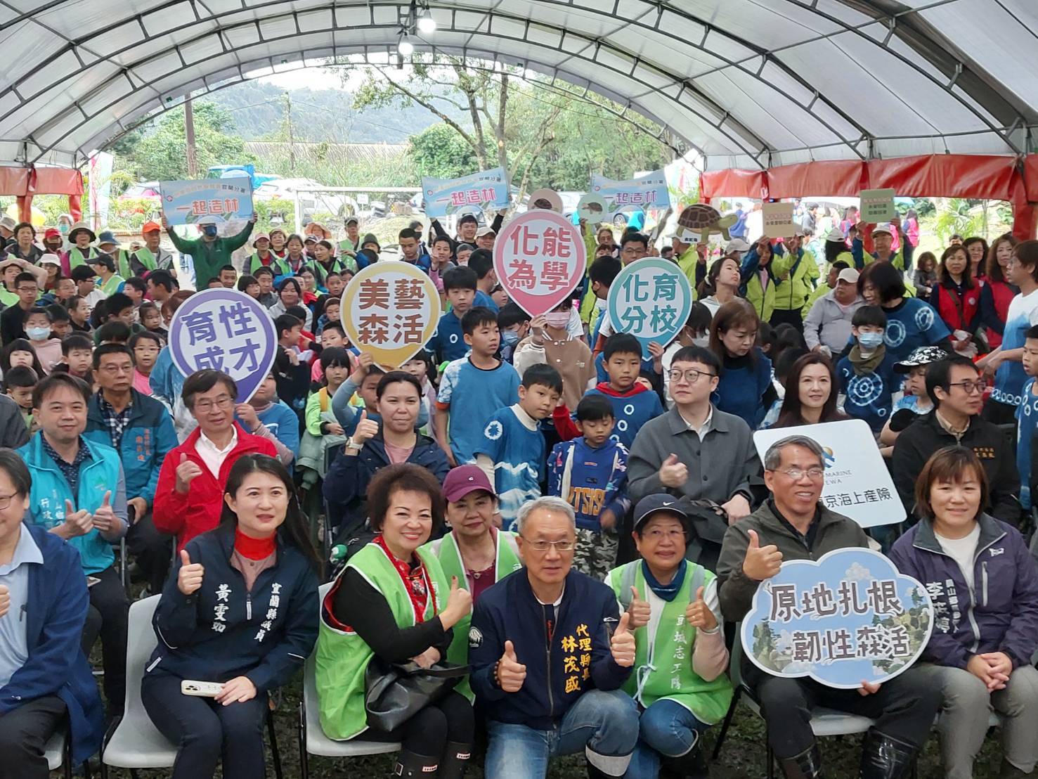 化育分校長期以「美藝森活」為校園特色,將森林與環境教育融入日常教學。校園部分樹木過去曾受褐根病影響,在縣府協助完成病株移除及土壤處理後,校方持續推動校園綠化與樹木健康管理。本次活動在整理後的校園空間種植光蠟樹、烏來杜鵑等,不僅為校園恢復綠意,也象徵新的生長與希望。